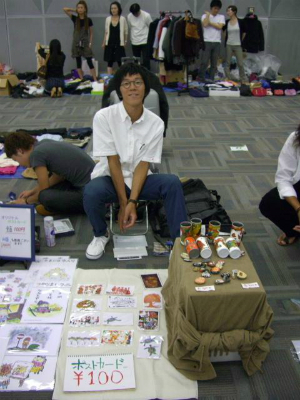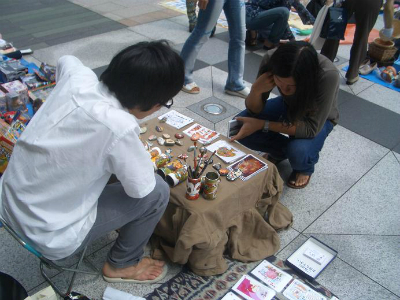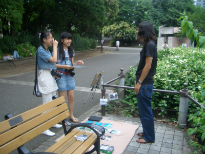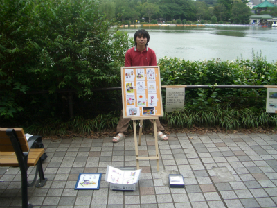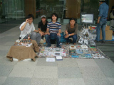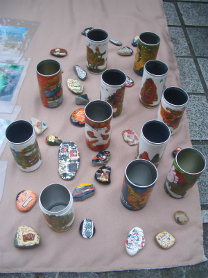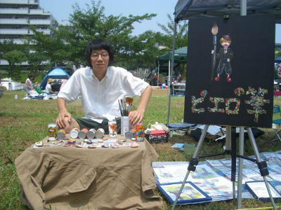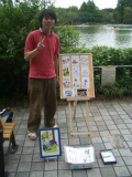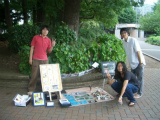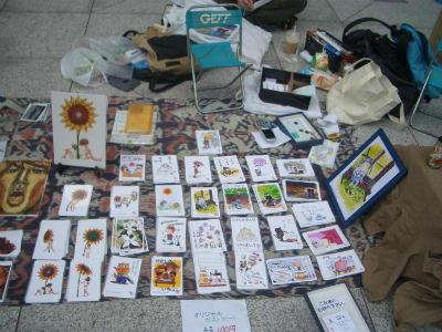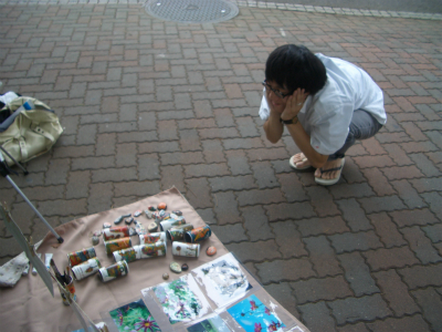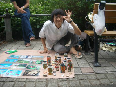 上野公園不忍池の片隅でポストカードや写真、空き缶や石に絵を描いたものを販売していた渡辺圭太、宮崎肇、中島康晴。そこに友達として足を運んだ櫻田博嵩の4名で、「ピエロの筆」を結成