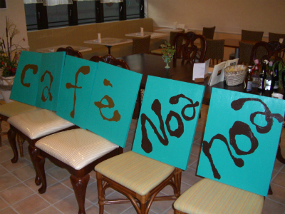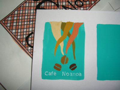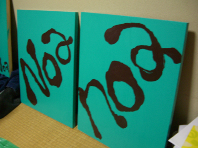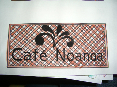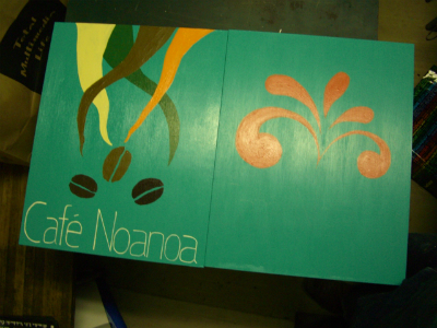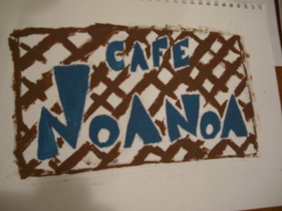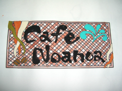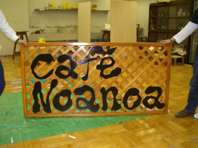 原宿にあるカフェ Noanoaさんの看板が、ピエロの筆としての最初の作品。